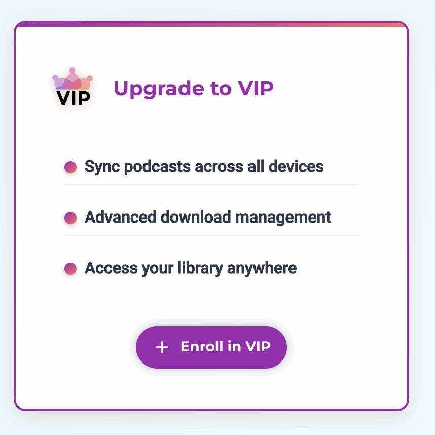 - use automatic downloads and enable download restrictions. even the free tier of podcast guru supports automated downloads of newly detected podcast episodes. Check the app and make sure the “Download management” / “Automatic downloads” setting is set to “only on wifi”. That way, if new content is detected while you are not on wifi, it will queue it up to download later when a wifi connection is available. Our vip tier members get a powerful management interface and some extra options to help clean up storage space as well, so if you’re a heavy podcast user, consider the vip upgrade. This can really make your life a lot easier and supports the app.